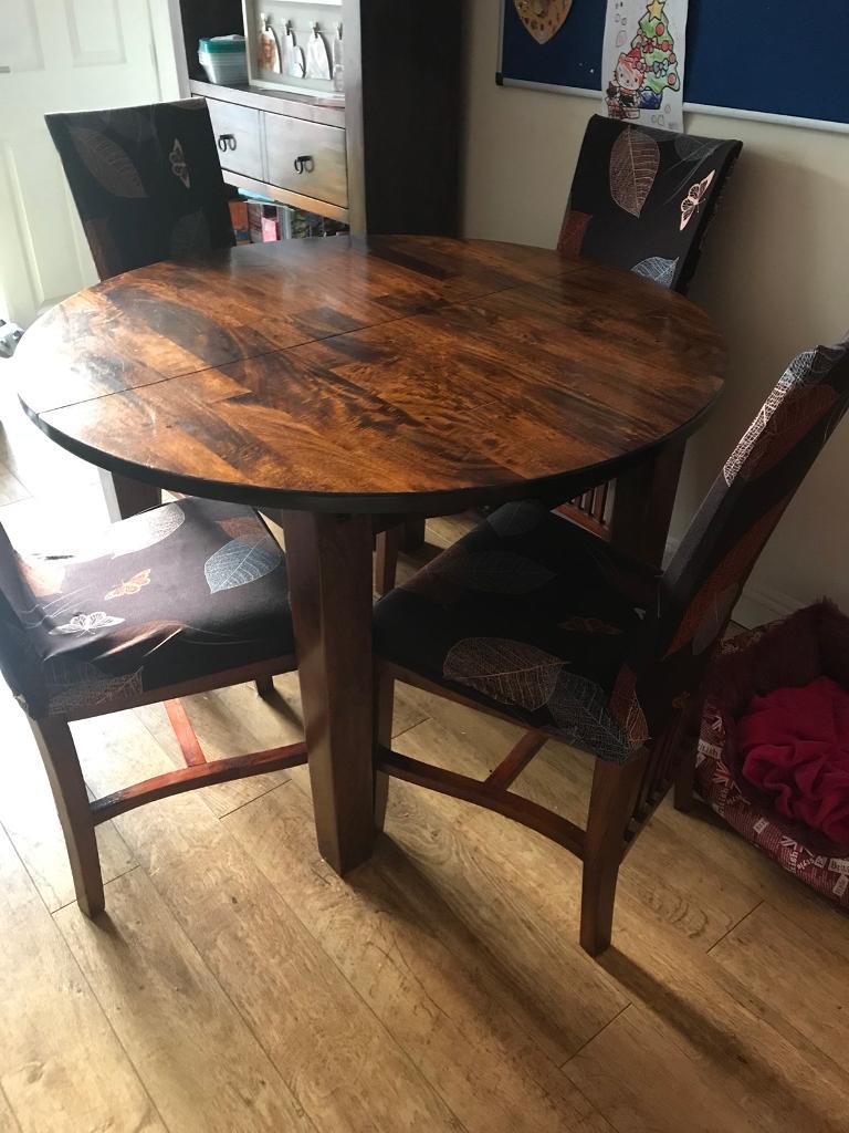 3 month s 6 month s 12 month s. Please read the instructions and warnings carefully before use, to ensure safe and satisfactory operation of this product. Has some marks on the surface. Dimensions, 105x105 round ,closed, 140x105 extended 77 high taken down now,simple by taking legs off via 2 bolts and washers per leg. This dining table is a subtle and practical table ideal for when you have extra guests as it can seat 6 to 8 when extended.