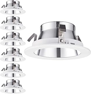 Torchstar 6 inch recessed can light trim with satin nickel metal step baffle.