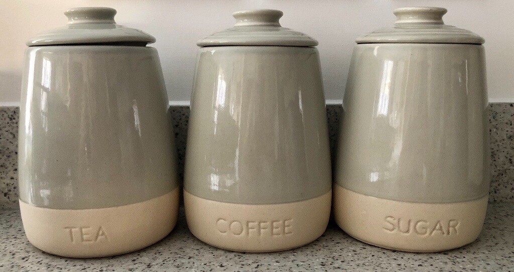 White and Silver Kitchen Canisters, Tea Coffee Sugar Jars ... from thebritishcrafthouse.co.uk We did not find results for: Check spelling or type a new query. Maybe you would like to learn more about one of these? White tea coffee sugar canisters next.